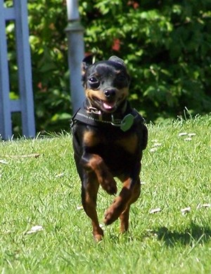 Aus dem Tierheim Jena brachte ich auch ein weiteres Familienmitglied mit, Rambo. Er kam als Welpe ins Tierheim. Es war Liebe auf den ersten Blick. Vorerst nahm ich den quirligen Mini auf Pflege mit nach Hause. Der Winzling entkam aus jedem Zwinger, keine Kunst, wenn man so groß wie ein Meerschwein ist. Außerdem brach mir das Herz beim Gedanken des kleinen Rambos allein in einem riesengroßen Zwinger. Also gesagt getan, Rambo kam mit nach Hause und aus Pflege wurde für immer!